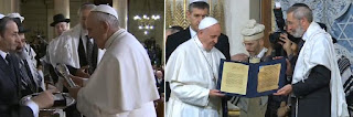 A precedere il discorso del Papa, quelli della presidente della Comunità ebraica di Roma, Ruth Dureghello, del presidente dell'Unione delle Comunità ebraiche italiane Renzo Gattegna e del rabbino Di Segni.