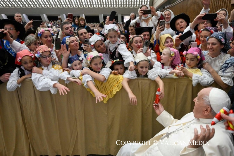 E penso sempre alla martoriata Ucraina che sta soffrendo tanto di questa guerra. Preghiamo perché si trovi una via di uscita. E penso alla Palestina, a Israele, al Myanmar. Che torni la pace, che ci sia pace! La guerra sempre è una sconfitta. Preghiamo per la pace.